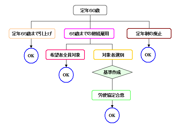 65歳定年制をはじめとする継続雇用制度の導入が義務付けられてきています。